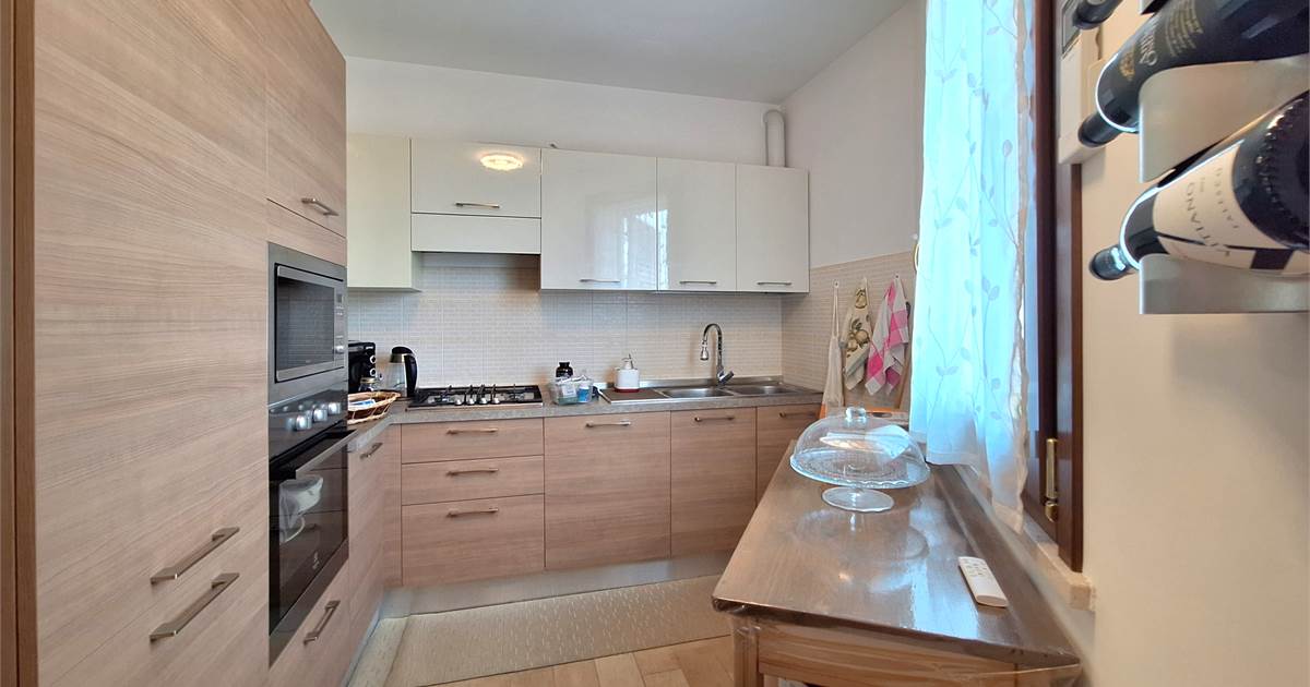 L' appartamento si trova in palazzina condominiale con ascensore ed è composto da soggiorno con cucina, camera matrimoniale, studio, due bagni, due balconi e garage.