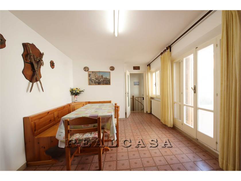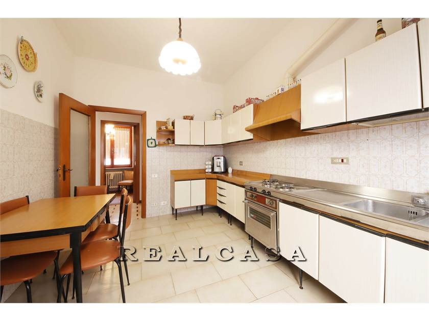 Piano primo con ampio salone, cucina abitabile, due camere matrimoniali, studio, bagno, ripostiglio e balcone.