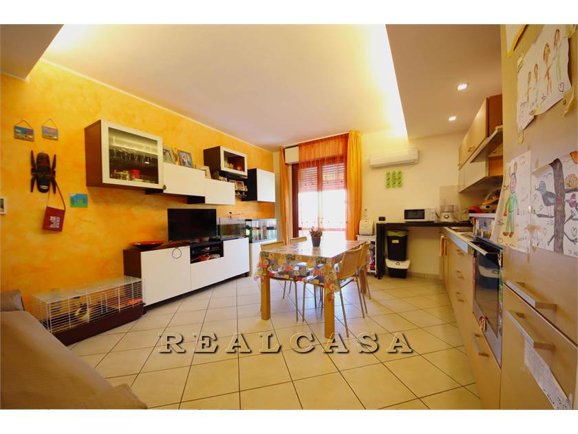 v1564 - Camerano - La Realcasa propone in vendita un appartamento di 65 mq di RECENTE COSTRUZIONE (2006) al terzo ed ultimo piano con ascensore composto da soggiorno con cucina a vista openspace, BALCONE PANORAMICO, DUE CAMERE (una matrimoniale con balcone e una cameretta), bagno finestrato con vasca e GARAGE di circa 18 mq.