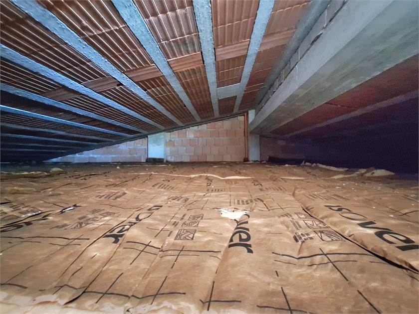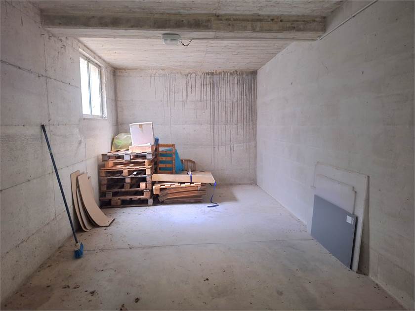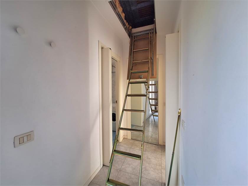 L'appartamento è composto da soggiorno con cucina, camera matrimoniale, bagno, ripostiglio, soffitta accessibile con botola, un ampio terrazzo a livello e un garage.