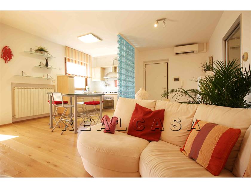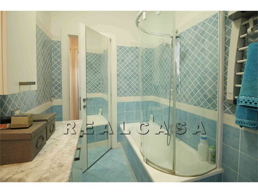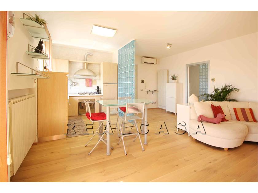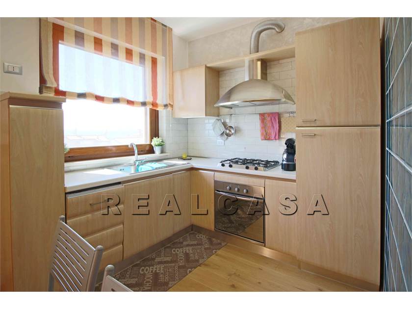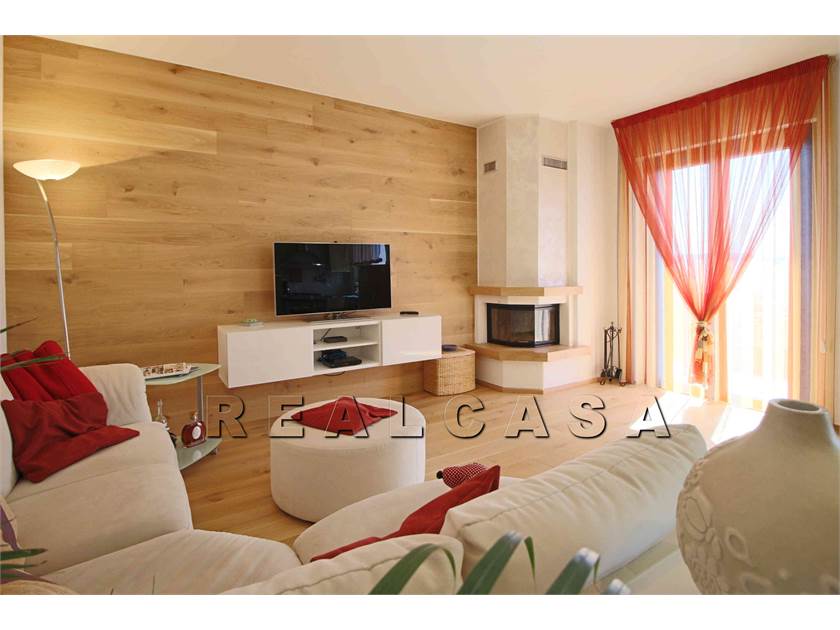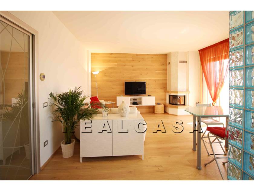AMPIO SOGGIORNO CON ANGOLO COTTURA, CAMINO, MOLTO LUMINOSO E CONFORTEVOLE CON ACCESSO AL BALCONE PANORAMICO. ATTRAVERSO UNA PORTA SCORREVOLE SI ACCEDE ALLA ZONA NOTTE COMPOSTA DA DUE CAMERE GRANDI, DAL BAGNO FINESTRATO CON VASCA E BOX DOCCIA SCORREVOLE E DAL SECONDO BALCONE.