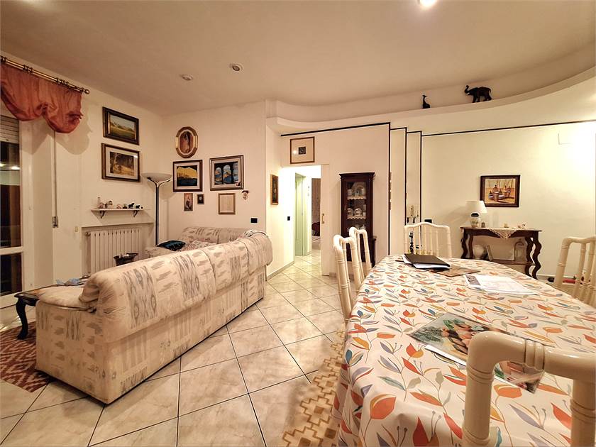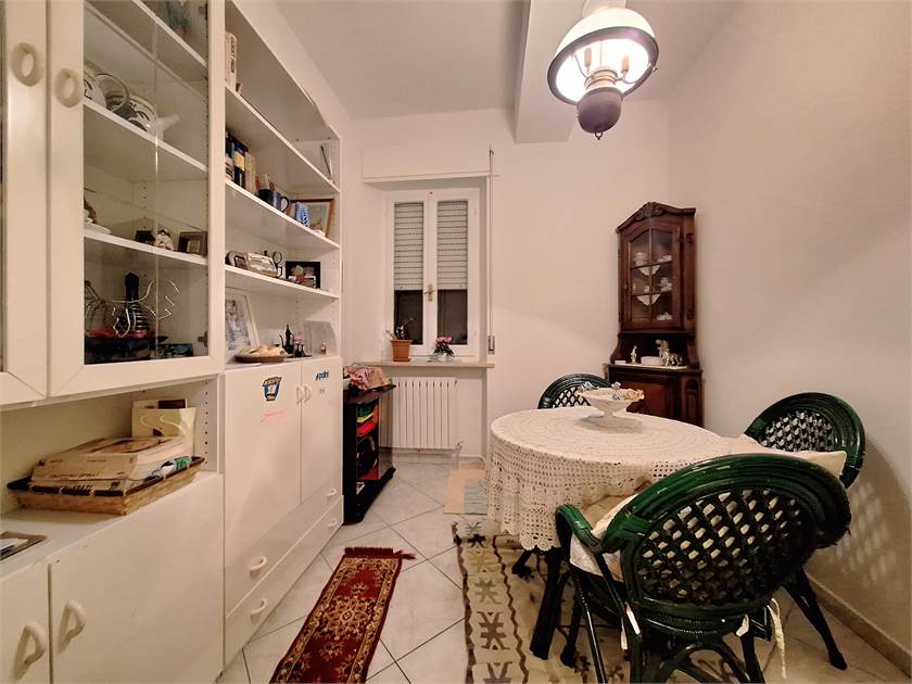 V2087 - Loreto - Appartamento al piano rialzato composto da soggiorno, cucinino, tre camere, un bagno, un ripostiglio, due balconi, piccola corte esterna e garage.