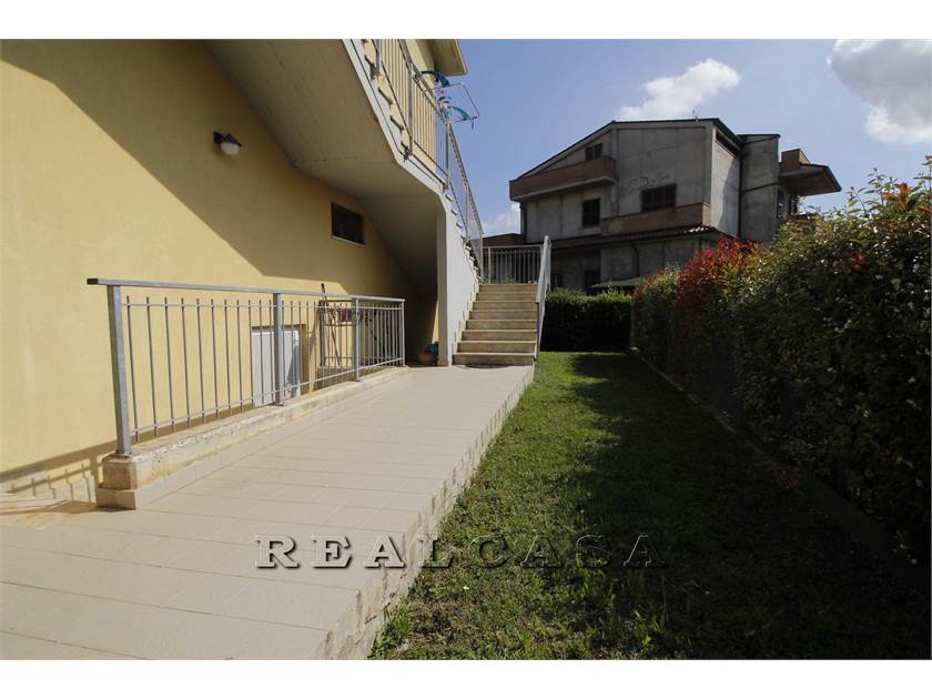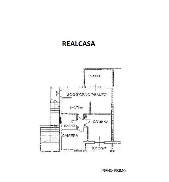 Dal cancello al piano terra si entra direttamente in GIARDINO di circa 100 mq dal quale attraverso la scala esterna si accede all'appartamento al piano primo composto da soggiorno con angolo cottura con accesso al TERRAZZO ABITABILE, DUE CAMERE, bagno, e un balcone.