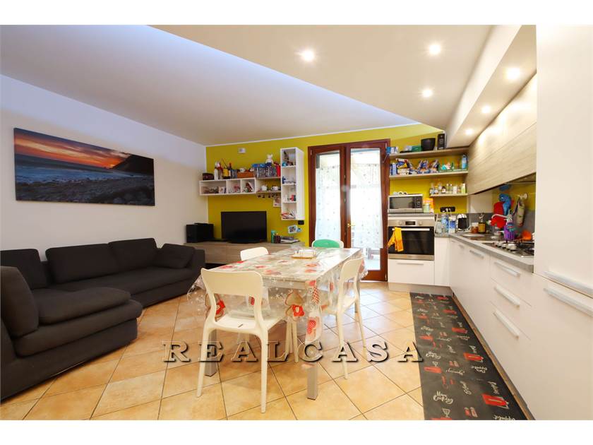 L'agenzia Realcasa propone in esclusiva la vendita di un appartamento al PIANO TERRA rialzato, di recente costruzione (2009) composto da SOGGIORNO CON CUCINA, DUE CAMERE, BAGNO, DUE CORTI ESCLUSIVE con pergolato e GARAGE di 20 mq.