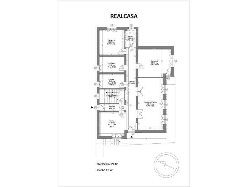 L'abitazione si sviluppa su tre livelli,composta da ingresso,soggiorno-pranzo,cucina,disimpegno,quattro camere,un bagno e un balcone al piano rialzato, vari locali adibiti a soffitta accessibile tramite vano scala interno al piano primo e da lavanderia, soggiorno, disimpegno, un bagno e un garage al piano seminterrato.
