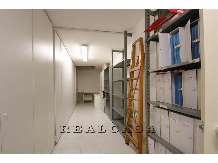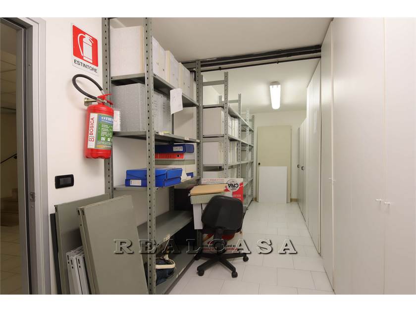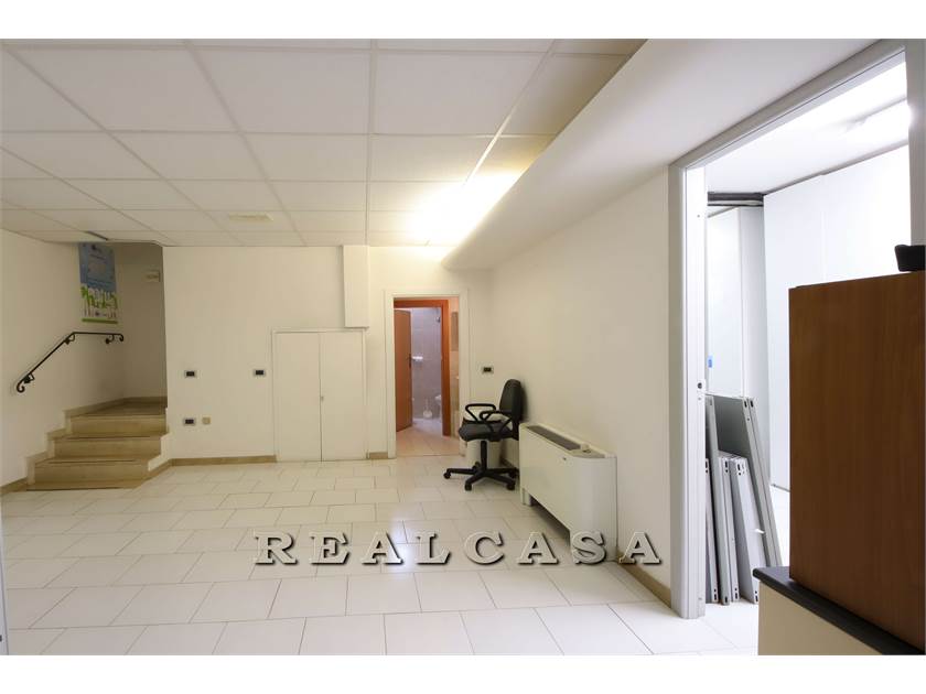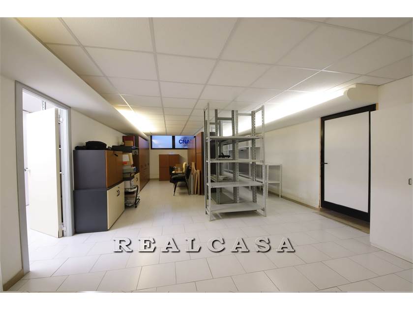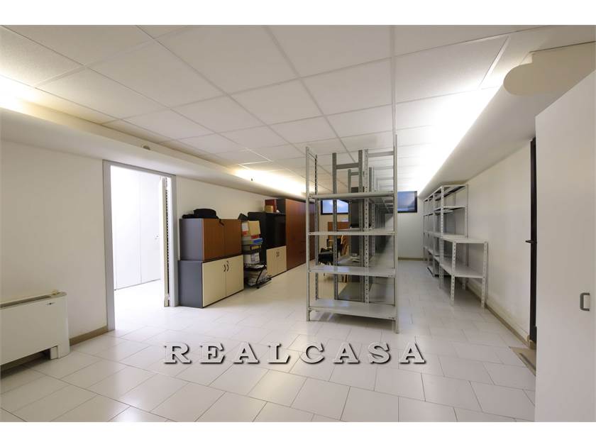 Piano terra con ampia vetrina, ingresso, tre locali ufficio, scala interna comunicante con ampi locali al piano inerrato come deposito e locali sgombero con bagno.