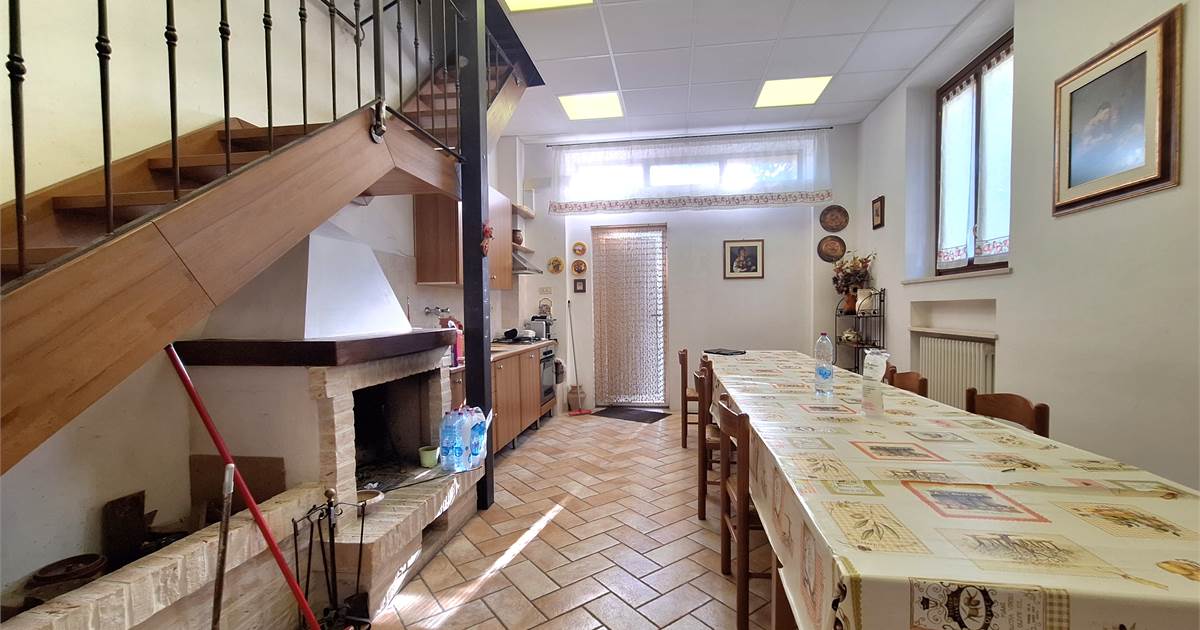 Questa soluzione offre l'opportunità di un ampio appartamento da ristrutturare e una taverna dal fascino unico, completa di un accogliente camino in ottimo stato, stanza pluriuso e un bagn0 già ristrutturati.