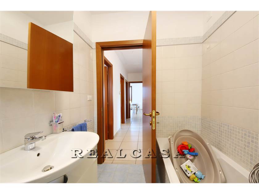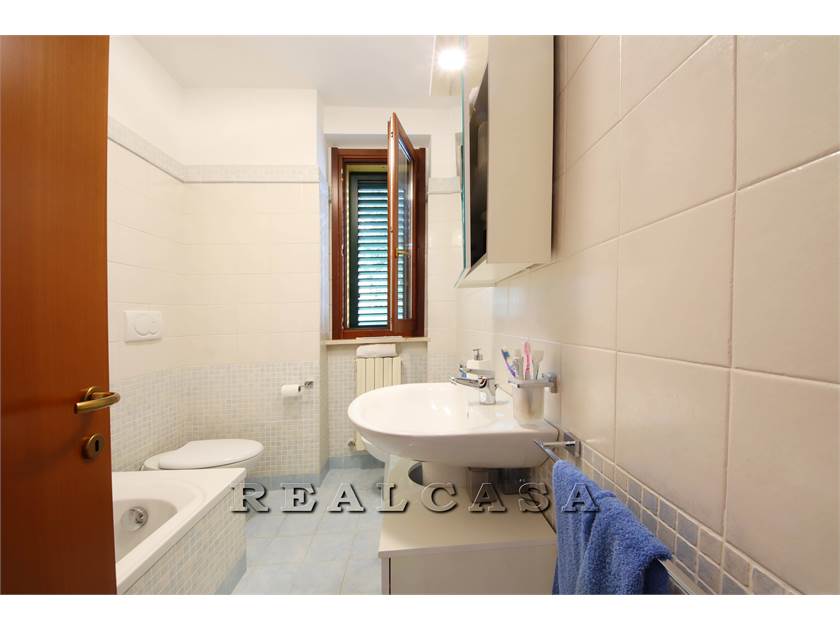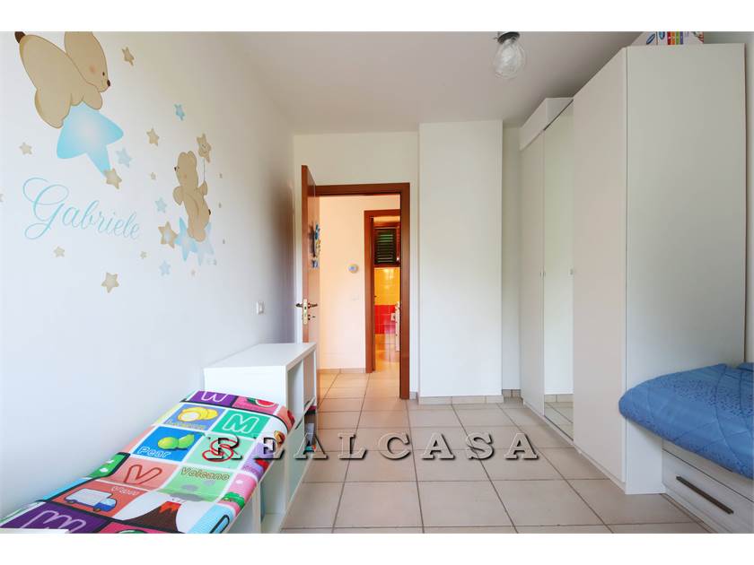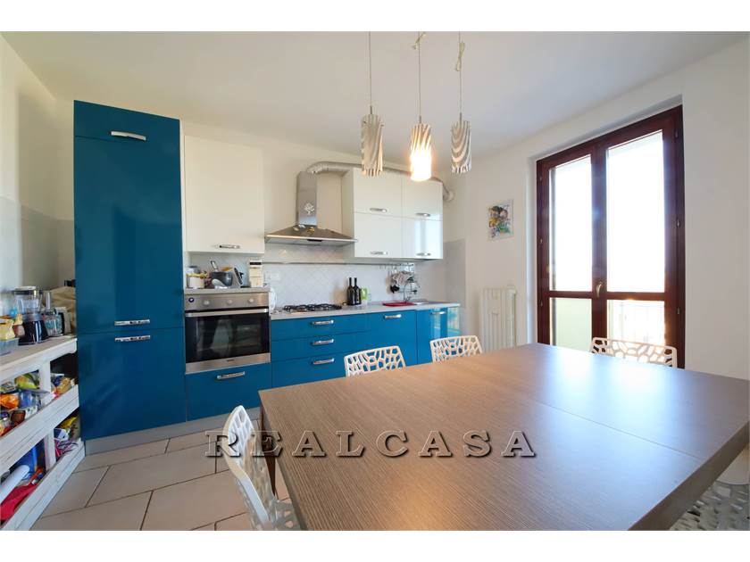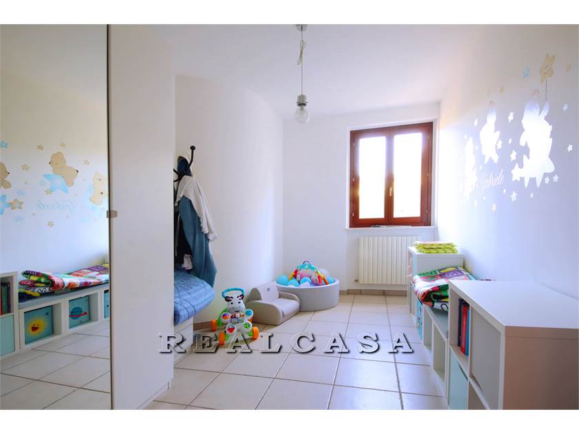 v1671 L'agenzia Realcasa vende in esclusiva un appartamento con ingresso INDIPENDENTE al primo piano di mq 100 composto da ampio soggiorno con cucina, TRE CAMERE, (una matrimoniale, due camerette singole), DUE BAGNI, ripostiglio, soffitta, due balconi, GIARDINO e ampio GARAGE con cantina di 61 mq. Subito disponibile.